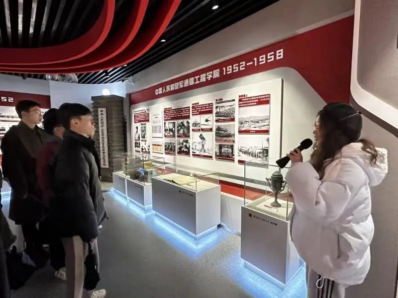 新冬碎瓊,在講解員聲情并茂的講解下,同學們有序進入校史館參觀了“序廳、俯垂明訓、校史鉤沉、今日華章”四大篇章,全面了解學校發展歷史、辦學成就、校友代表和動人故事。一張張黑白色的舊照片,一段段可歌可泣的感人事跡,無不體現著西電人永遠聽黨話、跟黨走的堅定決心,展示了西電人從半部電臺起家的篳路藍縷,也見證了如今人才培養的西電現象。同為西電人,每位同學心中升騰起自豪與驕傲,更深刻意識到新時代賦予西電人的責任使命。