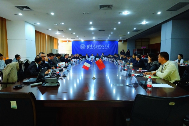 會后,法國綜合理工集團代表在西電代表和項目學生的陪同下參觀了西電的聯合實驗室并進行交流討論。