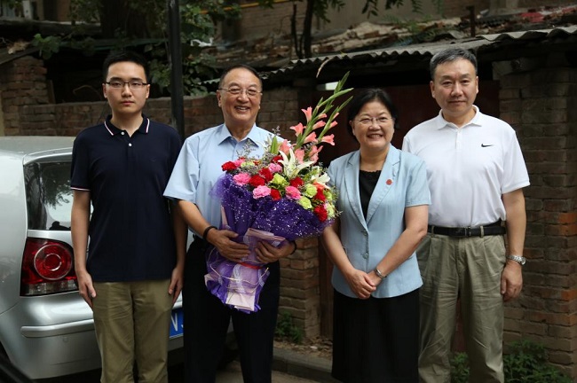 秋涼漸至,天空飄起小雨。下午5點30分,鄭曉靜便早早來到西電家屬院68號樓下,等待著這位老校友的歸來。5點50分,柳傳志一行匆匆趕來。帶著準備好的鮮花和禮物,柳傳志與鄭曉靜一道,看望對他影響頗深的指導員趙定老師。