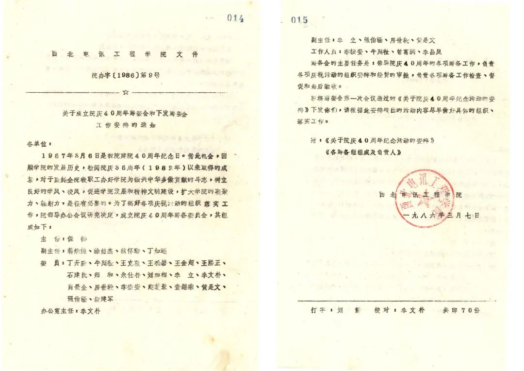 ▲西北電訊工程學院校慶40周年籌委會工作安排(西電檔案館館藏)