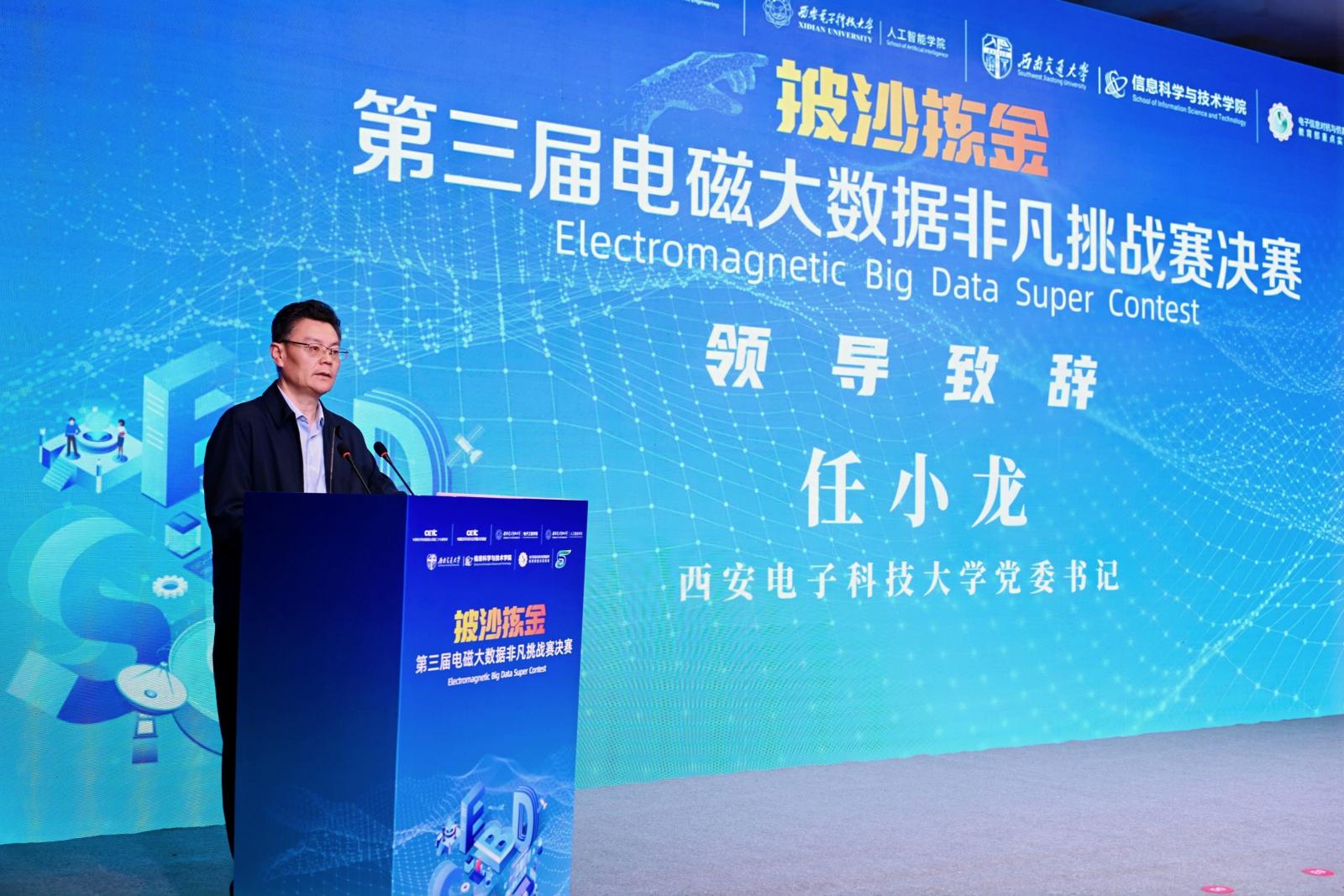 西電電院網訊(通訊員馬思翀)4月11日下午,第三屆“電磁大數據·非凡挑戰賽”決賽活動在西電北校區舉行。此次大賽由中國電子科技集團公司第二十九研究所(以下簡稱“二十九所”)、西電等單位主辦,西電電子工程學院承辦。二十九所黨委書記楊建橋、學校黨委書記任小龍致開幕詞,黨委副書記、紀委書記郭俊參加活動。