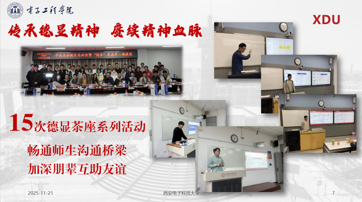 班級黨團建設成效顯著,現有黨員與預備黨員8人,團員27人,青年大學習參與率持續保持接近100%。通過定期舉辦“德顯沙龍”、“師生座談會”等品牌活動,邀請專家學者、優秀校友面對面交流,將思想引領與專業教育深度融合,筑牢了學子們科技報國的理想信念。