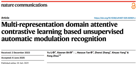 Y. Li, X. Shi, H. Tan, Z. Zhang, X. Yang, and F. Zhou, "Multi-representation domain attentive contrastive learning based unsupervised automatic modulation recognition," Nature Communications, vol. 16, no. 1, p. 5951, 2025.