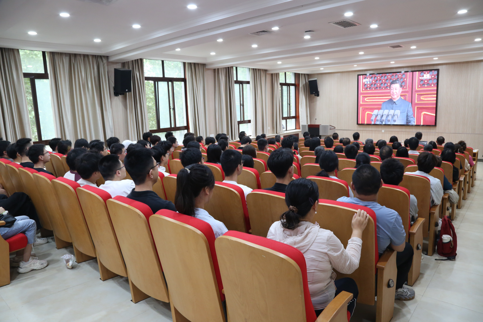 學院黨委向13個教職工黨支部、55個學生黨支部發出“紅色集結令”,依托實驗室、教研室、學生社區、宿舍黨團活動室等設立分會場,學院為在外出差的師生提供觀看鏈接,確保線上線下同步共振。大會結束后,直播結束后,各黨支部就地開展“弘揚偉大抗戰精神 建功中國式現代化”主題研討,師生們結合專業所學、崗位所責暢談體會,把感動轉化為科研報國的行動力。