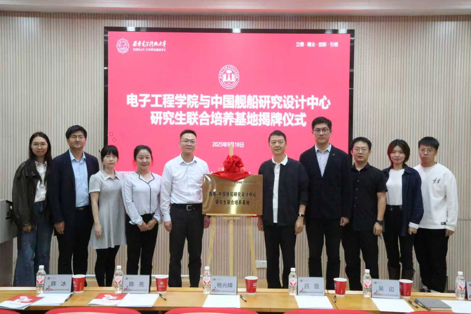西電電院網訊(通訊員 吳重陽)9月18日下午,西電—中國艦船研究設計中心研究生聯合培養基地揭牌儀式在北校區主樓二區201報告廳舉行。中國艦船研究設計中心一七室主任陳亮,電子工程學院黨委書記楊光暐,學校卓越工程師學院副院長呂昆等參加揭牌儀式,活動由學院副院長吳邊主持。