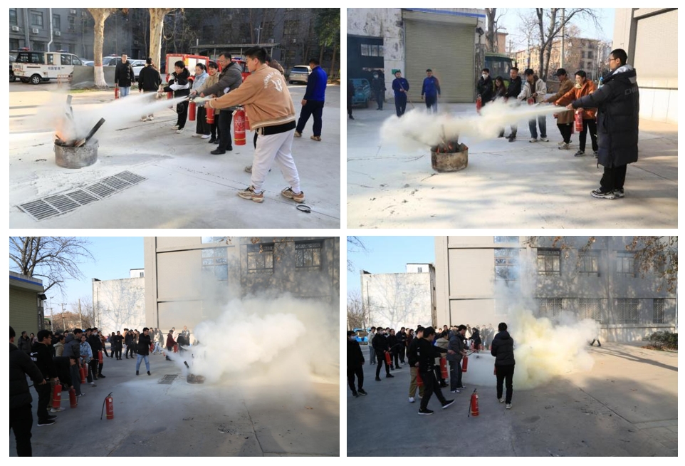 理論知識講解結束后,師生們來到保衛處消防站,進行了滅火器材的實操演練。工作人員現場演示滅火器的正確使用方法:站在火焰上風口,‘提拔握壓’。提——提起滅火器、拔——拔掉保險栓、握——握住噴嘴、壓——壓下壓把,距離燃燒物1.5米左右,對準火焰根部掃射進行迅速滅火。隨后在場的所有師生分組進行上手操作,在工作人員的指導下,師生們逐漸掌握了滅火技巧,成功撲滅了火源。