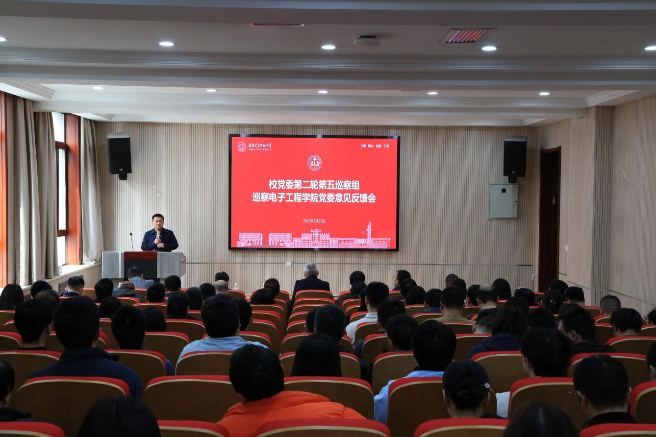 韓卿在反饋巡察情況時充分肯定了電院黨委在落實立德樹人根本任務、團結帶領全院師生推進高質量發展方面取得的成績,并指出了巡察發現學院在守正創新、銳意改革、擔當解難、引領一流等四個方面存在的問題:一是學習貫徹習近平總書記關于教育的重要論述不夠系統深入,落實上級部署要求和學校工作安排不夠到位;二是落實全面從嚴治黨戰略部署不夠到位,履行“兩個責任”有差距;三是落實新時代黨的組織路線有差距,人才隊伍建設和基層黨建工作存在不足;四是巡察發現問題和主題教育檢視問題落實整改不夠有力,推動整改不夠徹底。同時就做好巡察整改工作提出意見建議。