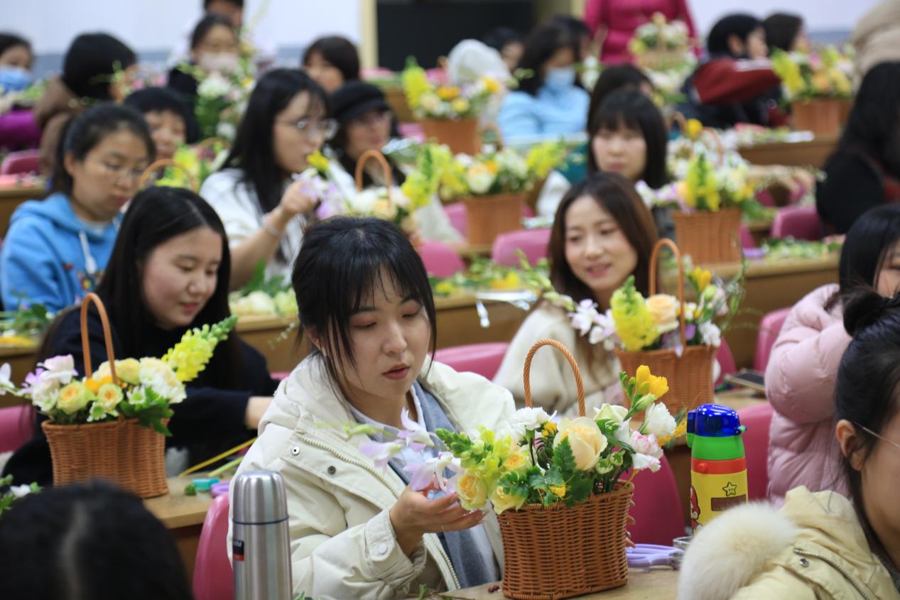西電電院網訊(通訊員李葉欣)在這充滿生機與希望的春日里,我們迎來了第115個“三八”國際婦女節,為豐富女教職工精神文化生活,展現新時代女性風采,電子工程學院和校工會在北校區聯合舉辦花藝沙龍,全校近80位女教職工參加。本次活動特邀獨立花藝設計師、梵高先生的秘密花園藝術工作室創始人劉思宇進行指導。