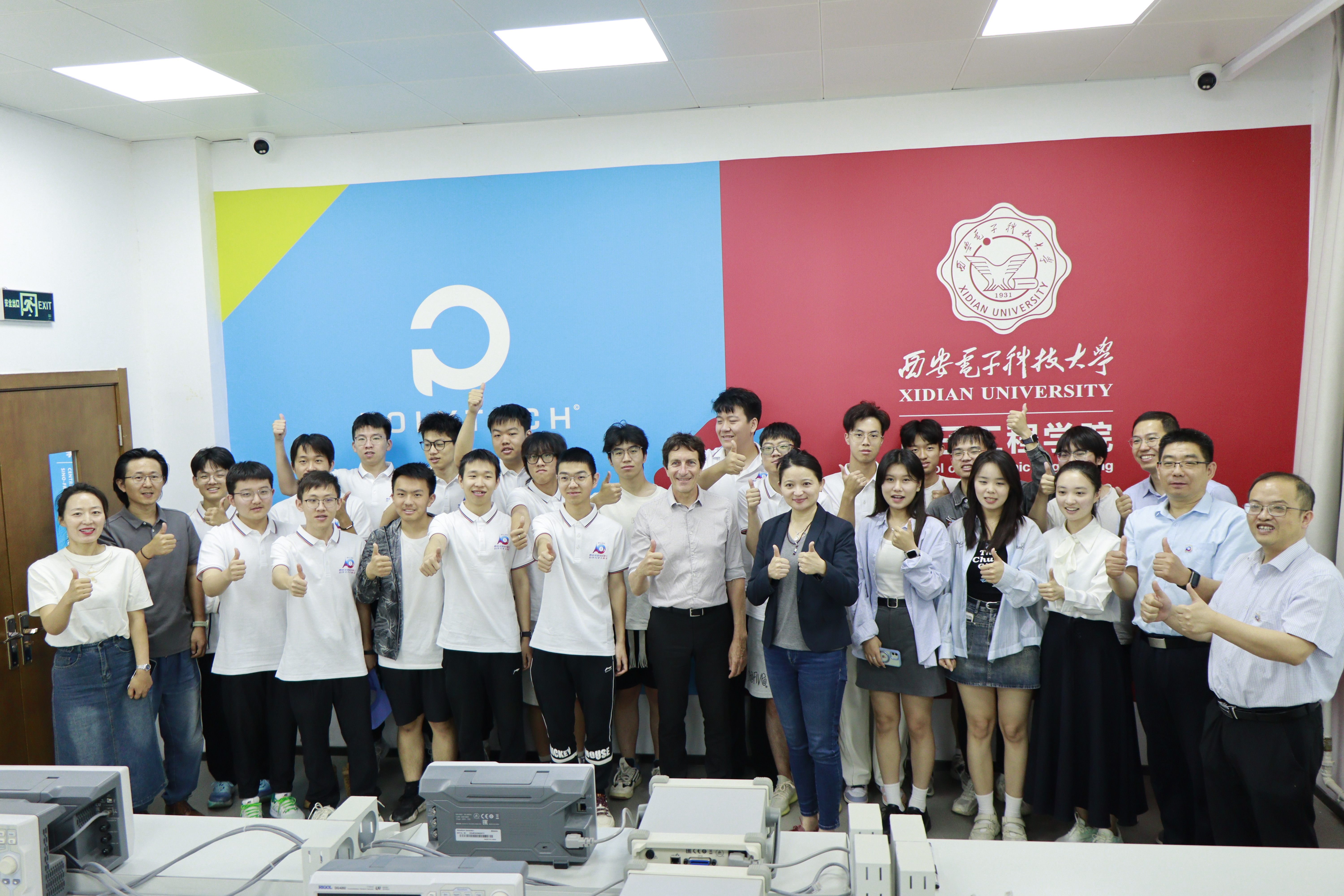 5月16日上午,在中法合作辦學項目十周年慶祝活動之際,法方代表尼斯綜合理工校長亞歷山大教授、國際合作項目主管尹娜女士在電子工程學院副院長任愛鋒的陪同下,共同參觀了中法合作辦學項目實驗室和教學環境,特別觀摩了學生的課余作品展示。電子工程學院實驗中心黨支部書記鄧軍,中法合作辦學辦公室主任宗汝、輔導員吳媛媛和教師任學施陪同參觀。