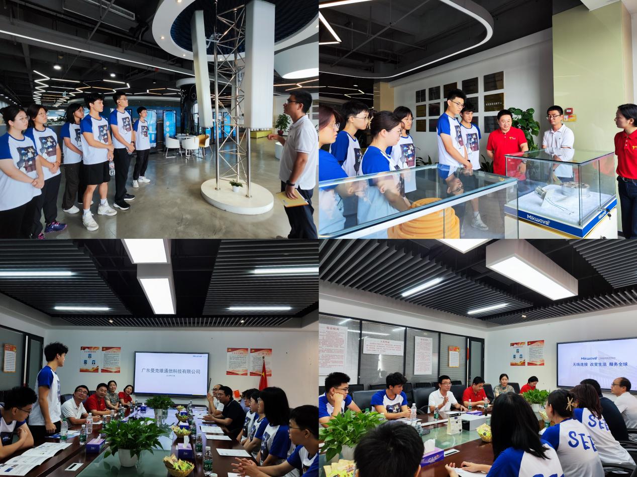 7月18日上午,實踐隊赴廣州市廣東曼克維通信科技有限公司。曼克維是一家國家級專精特新“小巨人”企業,在公司副總經理羅漫江陪同下,學院師生參觀了曼克維通信產品展廳,并走進研發實驗室,實地了解產品設備的研發與測試情況。隨后,學院一行同曼克維通信副總經理羅漫江、副總經理石磊、副總經理年金平開展座談。羅漫江介紹了曼克維通信發展歷史、企業文化、產業規模及人才需求等情況。公司對西電學子在工作中的專業技能、實踐能力給予高度認可,今后會持續與學院加強交流,促進雙方深度合作,歡迎更多西電優秀學子加入。雙方并圍繞學生關注的企業招聘需求、崗位匹配、面試建議等問題進行討論,得到了企業座談人員的細致解答與指導。