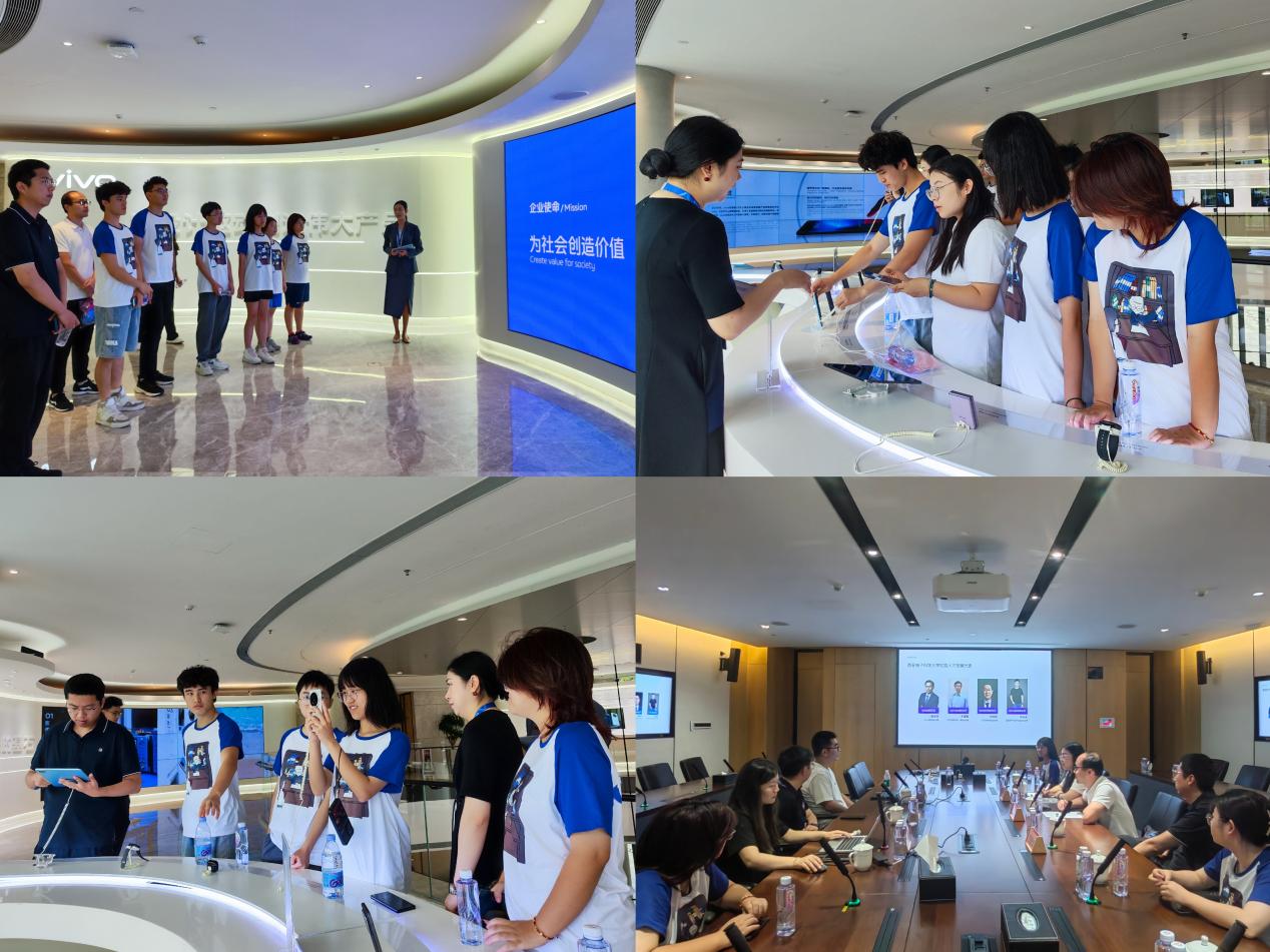 7月19日上午,實踐隊赴東莞市vivo移動通信有限公司。師生一行在校園招聘經理舒驍海帶領下參觀了企業園區、手機組裝車間、展廳,深入了解vivo科研成果、科技創新、智能生產等情況,讓同學們在參觀中對企業實際生產環節有了初步了解。