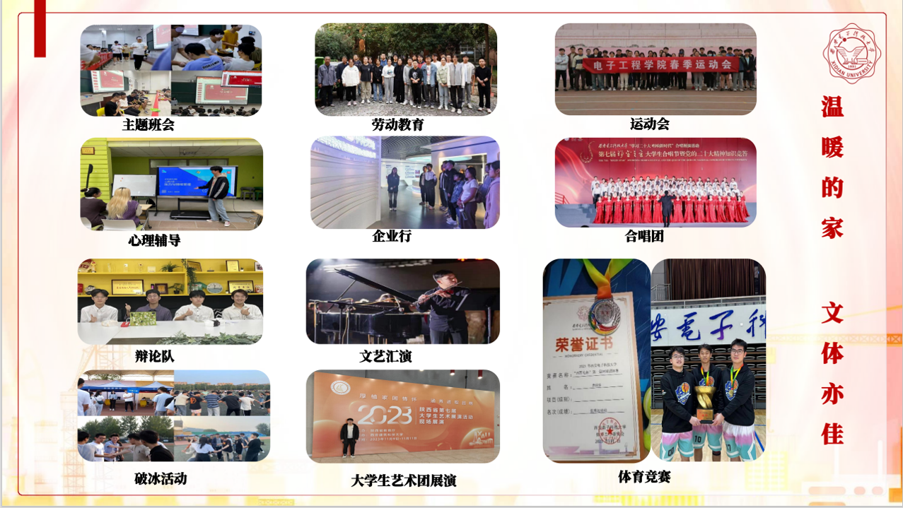 志在,愿在,我在,同學們的志愿活動隨處都在。在志愿服務、暑期支教,無償獻血等現場上,都能看到同學們的身影,他們積極參加志愿服務,以奮斗詮釋責任擔當,用奉獻書寫不凡篇章。他們熱愛藝術與生活,包容自由,才華橫溢,在音樂、攝影、繪畫、主持、辯論、演講等方面百花齊放;他們注重培養良好的衛生生活習慣,獲得9項先進宿舍的稱號。同學有嚴格的紀律和高昂的斗志,在軍訓中獲得了4項“軍訓優秀學員”的稱號。