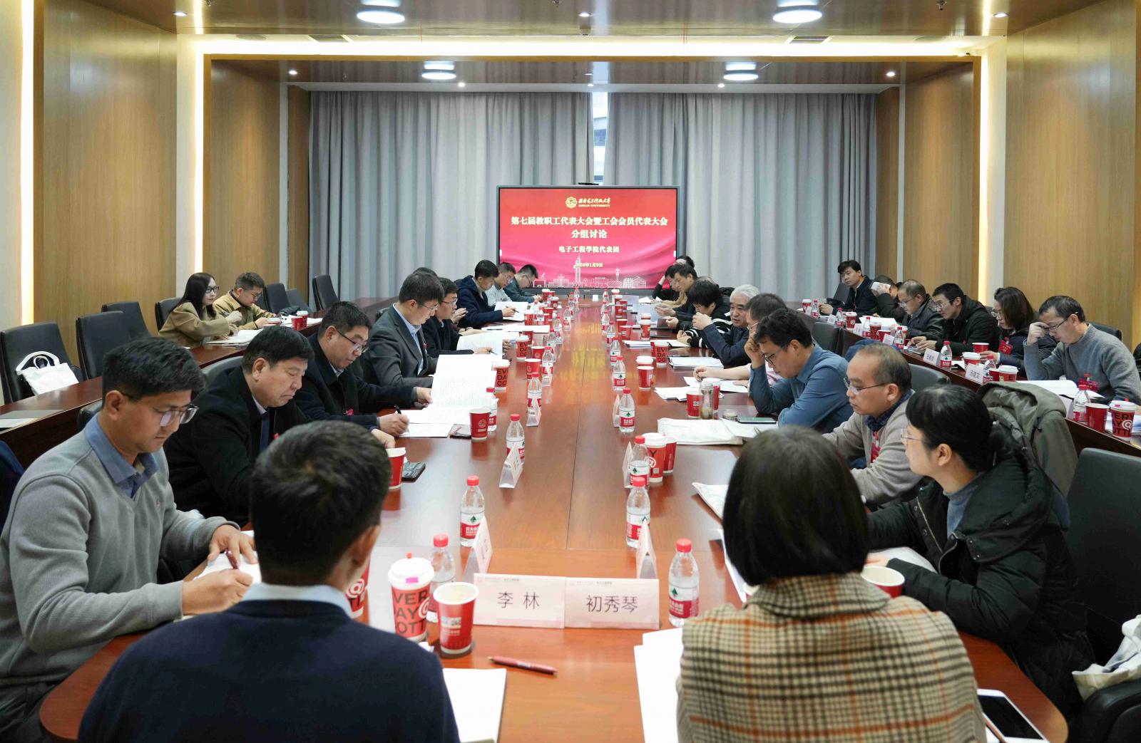 (通訊員劉昕雨)1月9日下午,學校第七屆教職工代表大會暨工會會員代表大會電子工程學院代表團分組討論會在南校區會議中心104室開展,校長張新亮參加會議,會議由電子工程學院黨委書記楊光暐主持。