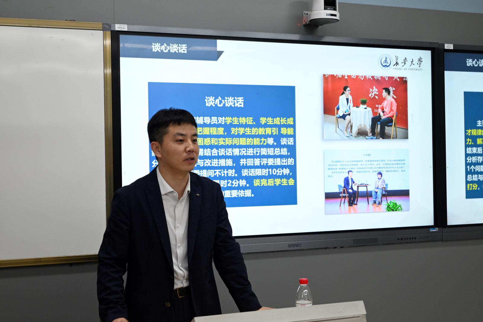 劉建鋒代表學院對楊帆老師的到來表示熱烈歡迎。他表示,學院高度重視學生工作,注重輔導員素質提升,著力打造一支高水平、高素質的輔導員隊伍,適應新時代學生工作要求,助力學院高質量發展。他希望全體輔導員珍惜培訓機會,認真領會精神,學習先進經驗,不斷提高綜合素質,為學院一流學工建設做出新的貢獻。