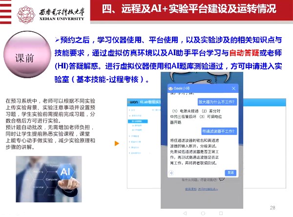 周佳社教授報告的內容包括實驗室建設與改革的意義與目的、建設理念與實踐教學體系、傳統實驗現狀及實驗課程運轉情況、遠程及AI+實驗平臺建設及運轉情況、實驗室安全及管理等內容。
