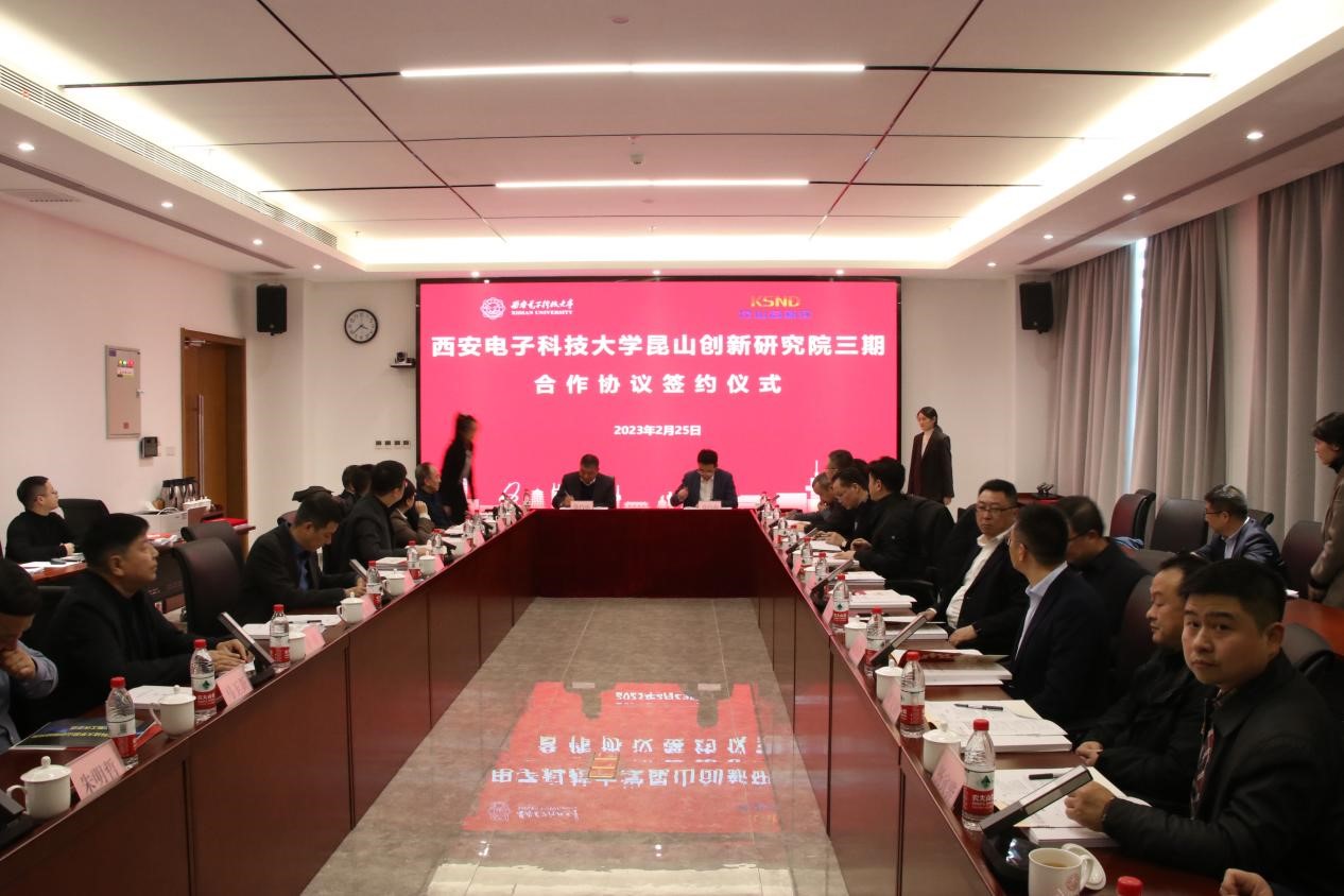 會議首先簽訂了《西安電子科技大學昆山創新研究院三期合作協議》以及《西安電子科技大學昆山創新研究院與中國航天科技集團公司九院704所合作框架協議》。隨后召開西電昆山創新研究院第二屆理事會第五次會議暨第三屆理事會第一次會議,理事長楊銀堂主持會議。會議通過了西電昆山創新研究院第三屆理事會理事長、理事及監事,產生了研究院院長和副院長,審議了研究院相關工作總結報告和三期發展規劃、2023年工作計劃等,雙方就有關問題展開討論并形成理事會決議。