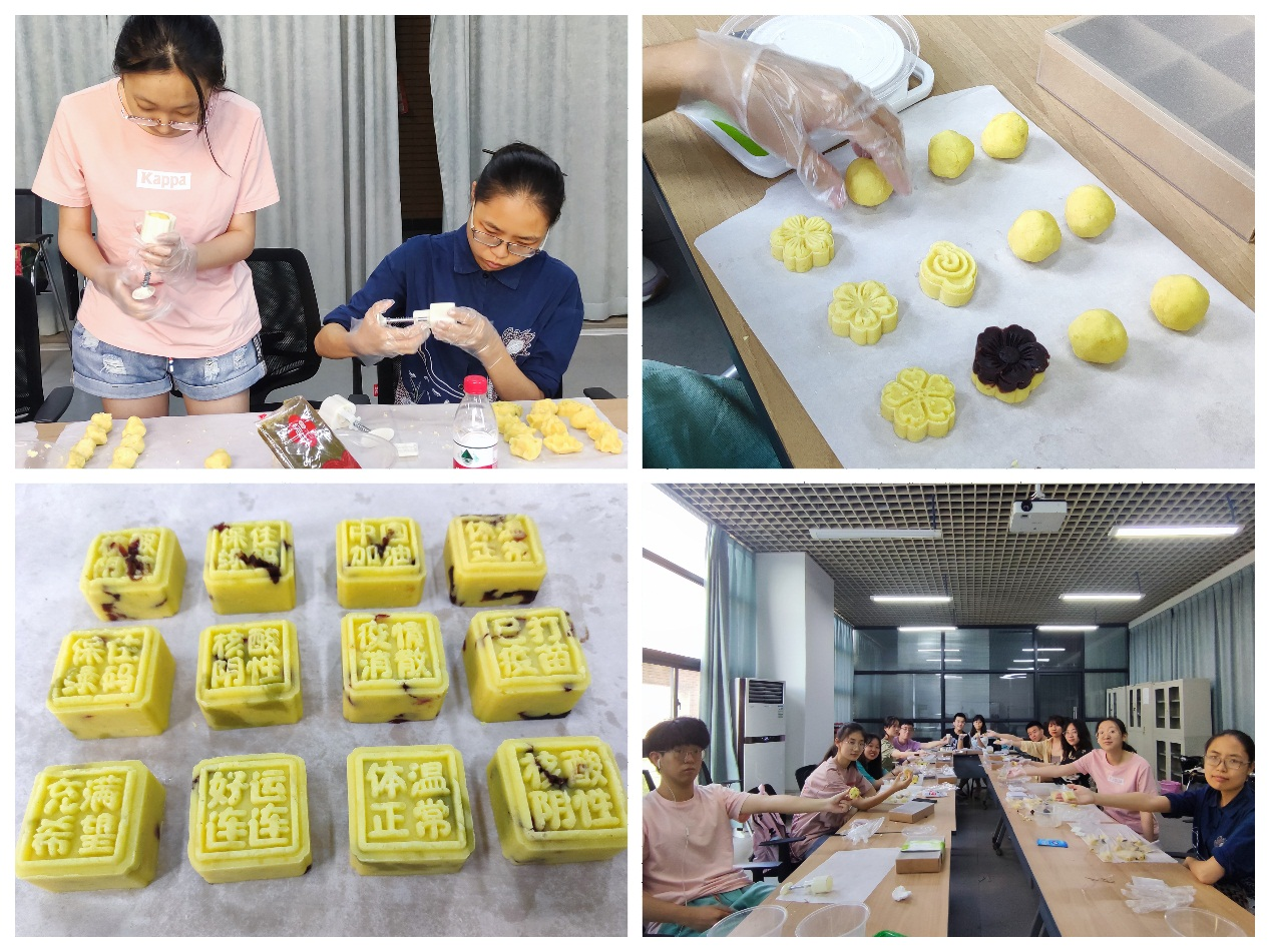 端午節除了香囊之外,還有 “夏日綠豆糕”活動,指導老師介紹了各種原材料,模具的使用方法后,同學們便開始了如火如荼的制作環節,揉面、稱重、壓模,操作手法逐漸嫻熟起來,一陣忙碌過后,一個個精致的綠豆糕就呈現在大家眼前,在場的同學們都頗有成就感。現場還就南北方綠豆糕的差別展開了熱烈的討論,活動也使得同學們了解到各地端午節的習俗差異。