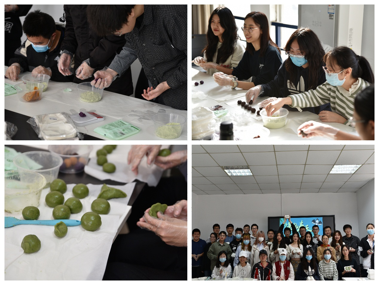 春天,正是制作青團的最好時候。中法合作辦學項目利用清明小長假開展“巧手制青團”活動。在專業老師的講解與指導下,同學們自行組隊,燒水、和面、制餡,有條不紊的進行著。歷時一個多小時,一個個青翠誘人的團子制作完畢,色如碧玉,糯韌綿軟,清香撲鼻。一些有創意的同學利用現場的食材,制作出屬于自己的特色青團。同學們將做好的青團認真包裝好,帶回宿舍分享給室友,與好友一起分享美食的喜悅。