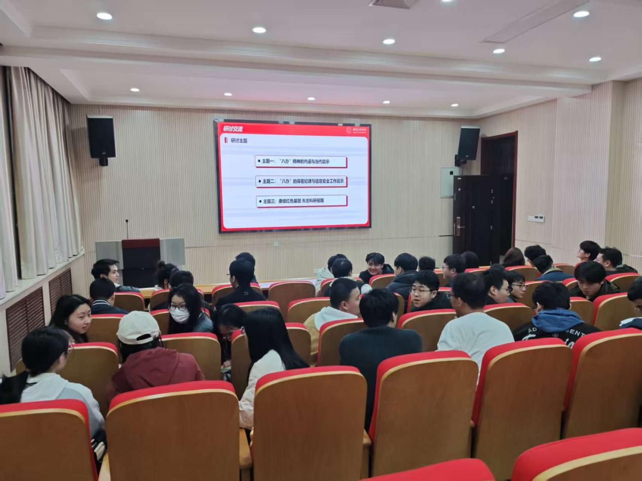參觀結束后,學院組織高黨班成員圍繞“賡續紅色基因矢志科研報國”“八辦”精神的內涵與當代啟示以及“八辦”的保密紀律與信息安全工作啟示等方面開展研討交流會,結合自身科研學習情況,交流了心得體會。