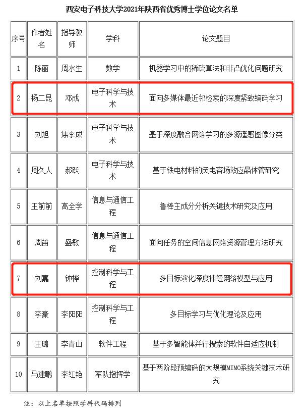(轉自西電新聞網訊)近日,陜西省教育廳、陜西省學位委員會公布了2021年陜西省優秀博士學位論文評選結果,西電10篇博士學位論文入選,入選數位居全省第三,成績喜人,再次彰顯了學校研究生培養的“硬核”實力。其中,電子工程學院鄧成教授、鐘樺教授指導的2篇博士學位論文入選。