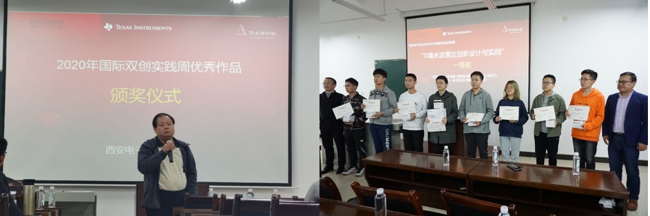 以賽促學、以賽促練,舉辦毫米波雷達綜合設計創新競賽,課程小組為單位完成發揮創新部分,需提交一個具有功能性的、在某一場景可以發揮實際效果的作品,結合AI等技術,如識別固液氣態的裝置、手勢識別、動作識別等。學生參賽積極性高,踴躍完成,競賽評比出一二三等獎,聘請了TI全球大學計劃總監王承寧博士、謝勝祥經理和教務處副處長張宇鵬、國家級電工電子示范中心周佳社主任為獲獎小組頒發了獎狀及獎品。