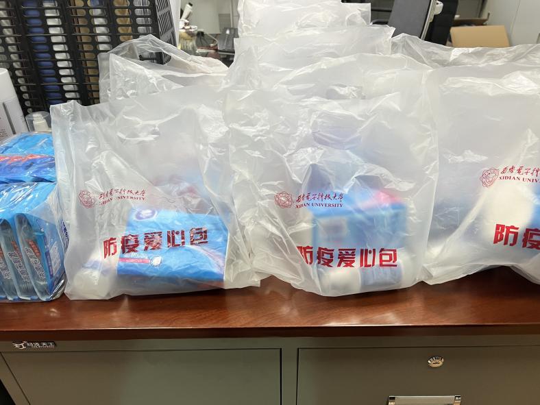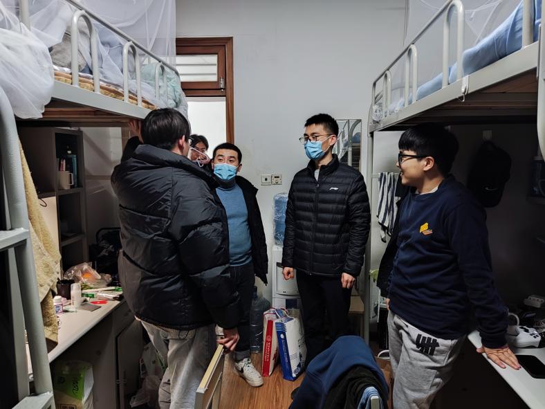 當晚,值班老師與研究生骨干走訪研究生宿舍,給大家送去疫情防控物資包,深入了解大家的需要訴求。