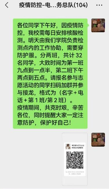 面對來勢洶洶的疫情,電子工程學院用心守護學生健康,用情關愛學生科研生活。從核酸檢測現場到隔離生活區,從數據排查到學生流調,學院始終守護著每位學生的健康安全;在疫情面簽,電院學子主動請纓,志愿服務。在師生的通力合作下,我們一定可以打贏這場疫情防控狙擊戰。