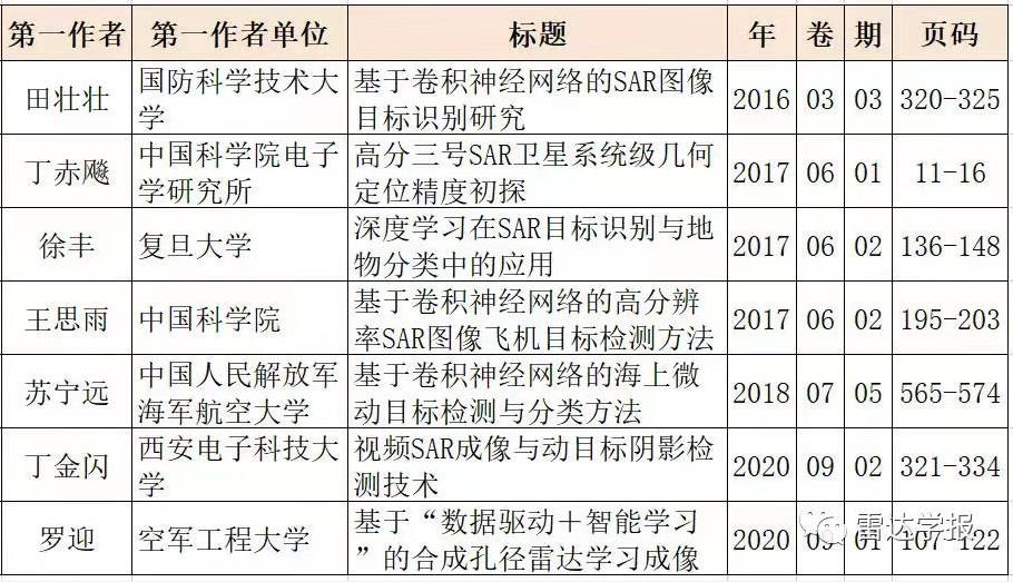 雷達學報本次入選論文