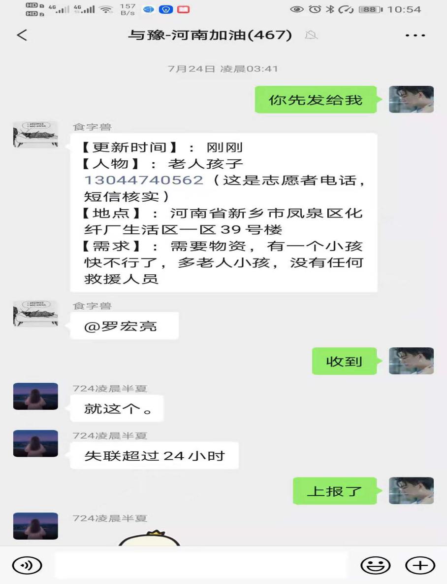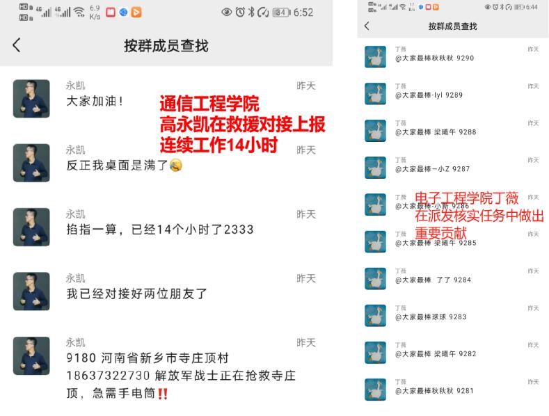 7月22日晚上,志愿者團隊通過分析線上救援大數據后發現鄭州的情況在逐步好轉,同時河南新鄉市等地出現更多的求助信息,志愿者團隊隨即轉移工作重點,將工作重心投入到更多需要幫助的區域。7月23日新鄉市汛情受災嚴重,羅宏亮和其他志愿者工作者在23日凌晨加班工作,當時十分鐘內在線文檔修改完善537次,錄入求助信息和物資信息160余條。24日凌晨3點多,羅宏亮得知河南新鄉市鳳泉區化纖廠生活區39號樓小孩和老人體力透支急需救援,迅速聯系救援人員救助受困人員。此時志愿者團隊已經號召西電160余名學子參與志愿者服務,“與豫”志愿者團隊團隊總人數達到900余人。羅宏亮同時建議志愿者團隊成立參與緊急救援的高校志愿者聯盟,越來越多的高校志愿者加入到“與豫”志愿者團隊。西電計算機科學與技術學院韋卓純同學大力宣傳河南抗擊汛情志愿服務工作,西安電子科技大學參與志愿服務團隊學生達到300余人,并引導社會各方面志愿者1500余人加入到志愿服務隊伍。