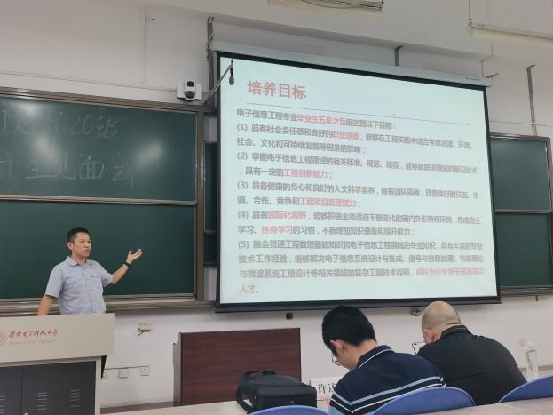 (通訊員高興東 朱恒希)9月12日晚,電子工程學院2020級本科生見面會在南校區舉行。學院領導班子成員、各系所及專業負責人、2020級本科生輔導員、全體2020級大類分流至電院本科生參加了見面會。