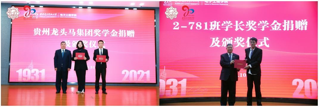 (通訊員韓旭)九秩風雨砥礪耕耘,九秩榮光薪火相傳,10月31日下午,電子工程學院獎學金捐贈及頒獎儀式在南校區圖書館A402報告廳舉行。西安電子科技大學黨委副書記楊銀堂教授、電子工程學院副院長鄧成教授、2-781班20余名校友以及貴州龍頭馬集團等企業的校友代表們出席本次活動。活動由電子工程學院黨委副書記劉建鋒主持。
