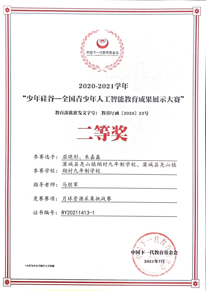 2017年起,學院對接蒲城堯山鎮翔村九年制學校開展“一院一品”特色幫扶,充分發揮學院在鄉村振興中的社會服務功能。學院結合學科特色和優勢,一是捐贈文具、書籍、體育活動用品、樂器等物資,支持翔村九年制學校堅持“五育”并舉,全面發展中小學生素質教育。2021年,學院捐贈4萬元用于支持翔村九年制學校購買樂器和科教器材等,學院本科2019級8名本科生捐贈4000元書籍和體育用品。二是開展“學黨史、辦實事,啟航新征程”捐贈活動,8名本科生將自己獲得的獎學金1.1萬元捐贈給翔村學校家庭貧困、品學兼優的學生,將自身社會責任感和歷史使命感傳遞給學生,鼓勵學生刻苦鉆研,用科學知識報效祖國。三是開展翔村學校師生代表走進西電,參觀校史館、博物館等,感受“愛黨愛國、勤勉務實,信息特色、敢為人先”的西電品質和大學文化,開拓眼界,提升學習興趣。四是落實“科創+”助力教育振興計劃,2021年學院資助建成的科創小屋已投入使用,用于翔村九年制學校開設3-6年級學生的科學課程、開展“科創+”暑期夏令營和青少年人工智能競賽培訓,暑假期間學院幫助送出一支隊伍參賽,獲得“全國青少年人工智能教育成果展示大賽”二等獎,2021年11月學院資助參加“筑夢杯”第三屆科創小屋實力賽,獲得一等獎3項,三等獎3項。
