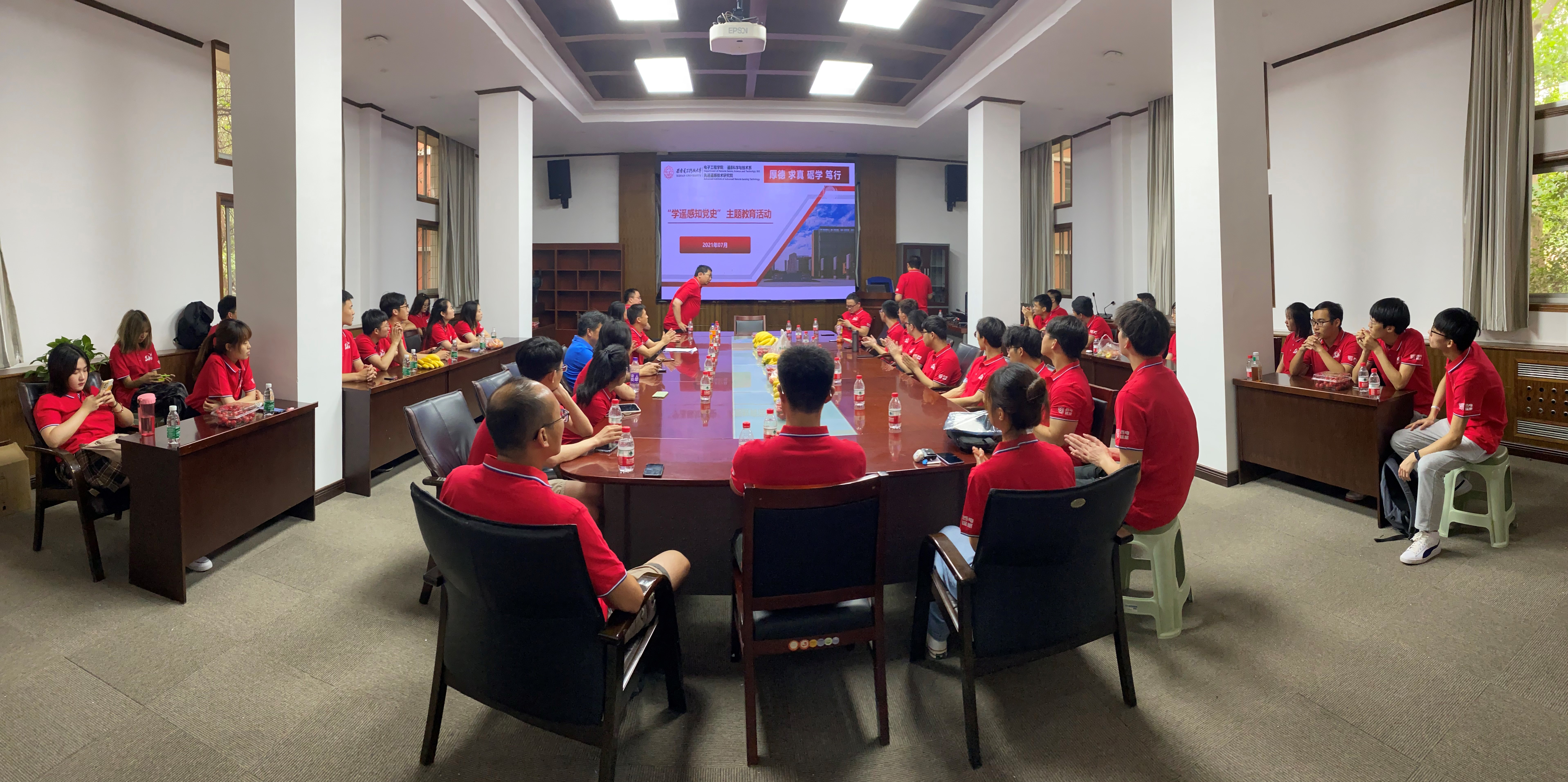 “學黨史、知遙感”主題教育活動是為了慶祝中國共產黨成立100周年,遙感系組織本專業師生開展的遙感專業知識與黨史、校史、院史相結合的學習教育活動。一方面,通過介紹黨史校史中的遙感印記,讓學生進一步了解遙感技術在新中國建設的各個領域中發揮的重要作用,增強學生專業自豪感和學習驅動力,鼓勵學生扎根遙感專業,為我國遙感技術新發展貢獻力量。另一方面,通過介紹先進遙感技術研究院的師資隊伍和科學研究情況,讓本專業低年級學生初步了解遙感科學與技術專業所涉及的學科知識,激發科研興趣。
