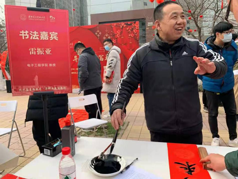 2月7日,學校在北校區大禮堂前舉辦“歡歡喜喜西電年,導師為我寫春聯”活動,為留校過春節學生送上新春祝福。學院領導、教師代表和學院全體留校學生參加了活動。電子工程學院雷振亞教授揮毫潑墨,為留校過春節同學送上一幅幅的“祝福”。