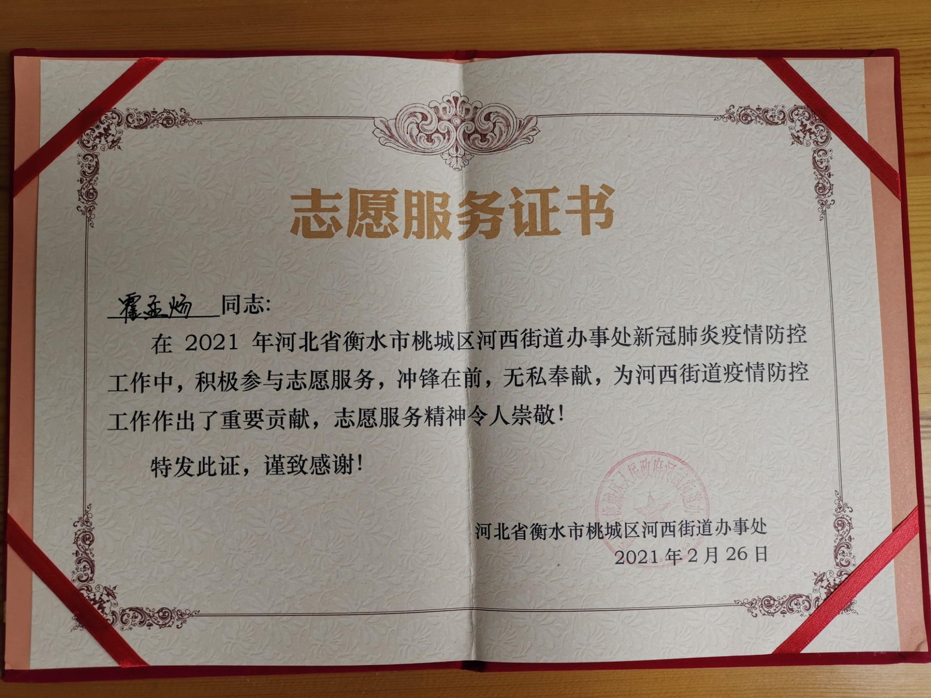 于是春節前,霍孟煬便主動請纓成為衡水市桃城區河西街道的一名志愿者,在疫情防控檢查點值班,為進出社區的居民進行登記和體溫檢測,排查轄區居民生活面臨的實際困難。霍孟煬說,10多天的志愿服務工作中,他感受到了社區居民積極配合工作的熱情,原以為‘疏遠’的鄰里關系,其實并非冷漠,面對疫情,大家的團結一心讓他很受感動。