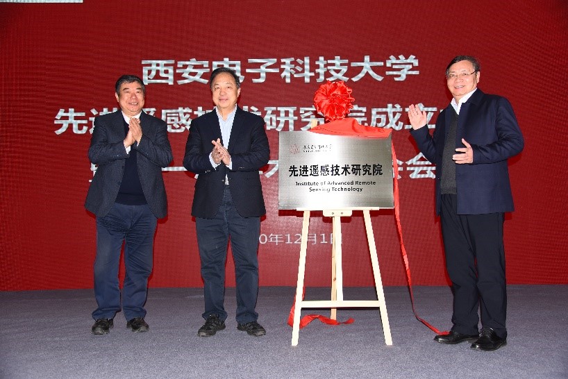 (楊銀堂書記和郭華東院士、龔健雅院士共同為研究院揭牌)