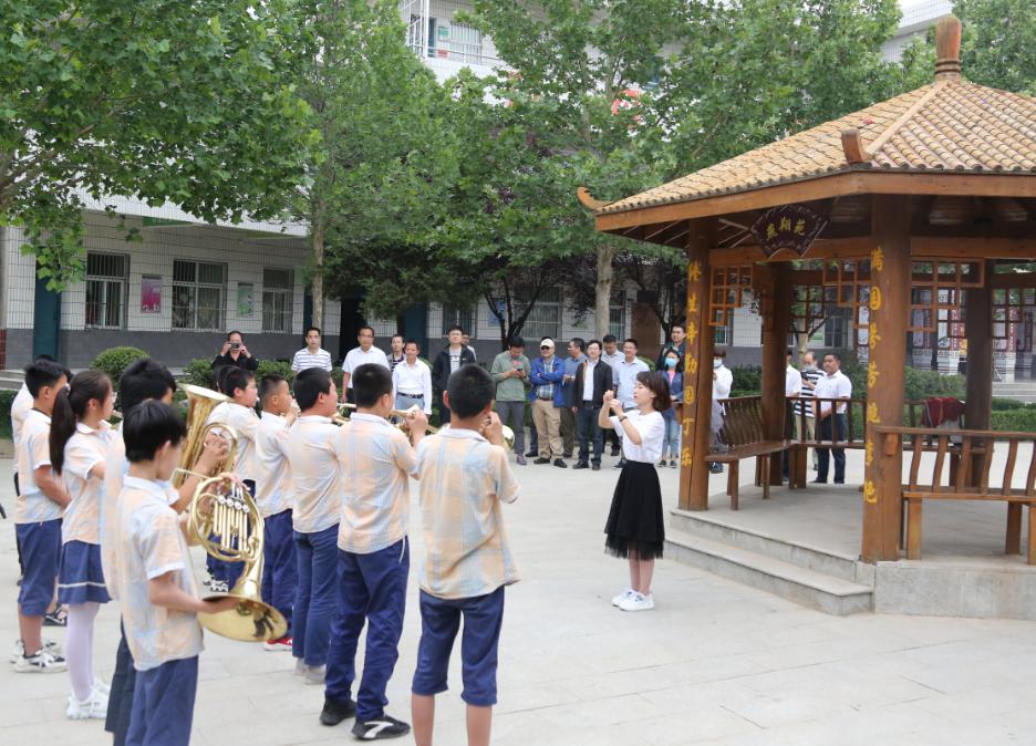 學院機關支部書記劉建鋒和堯山鎮翔村教育支部書記趙孝鋒簽訂結對幫扶協議,就采用組織聯建、資源共用、黨員聯育的方式,開展愛國主義教育、建設學生科技創新小屋、疫情防控期間暑期志愿者社會實踐支教等工作進行安排部署,并針對前期調研對接,翔村中學提出加強藝術教育、促進學生全面發展的培養目標,捐贈圓號、上低音號、薩克斯等樂器10余件。劉建鋒提出,希望通過黨建引領、精準施測,使翔村學校形成 “黨建工作有引領,活動開展有陣地、人才培養有規劃、脫貧攻堅有成效”的工作格局。