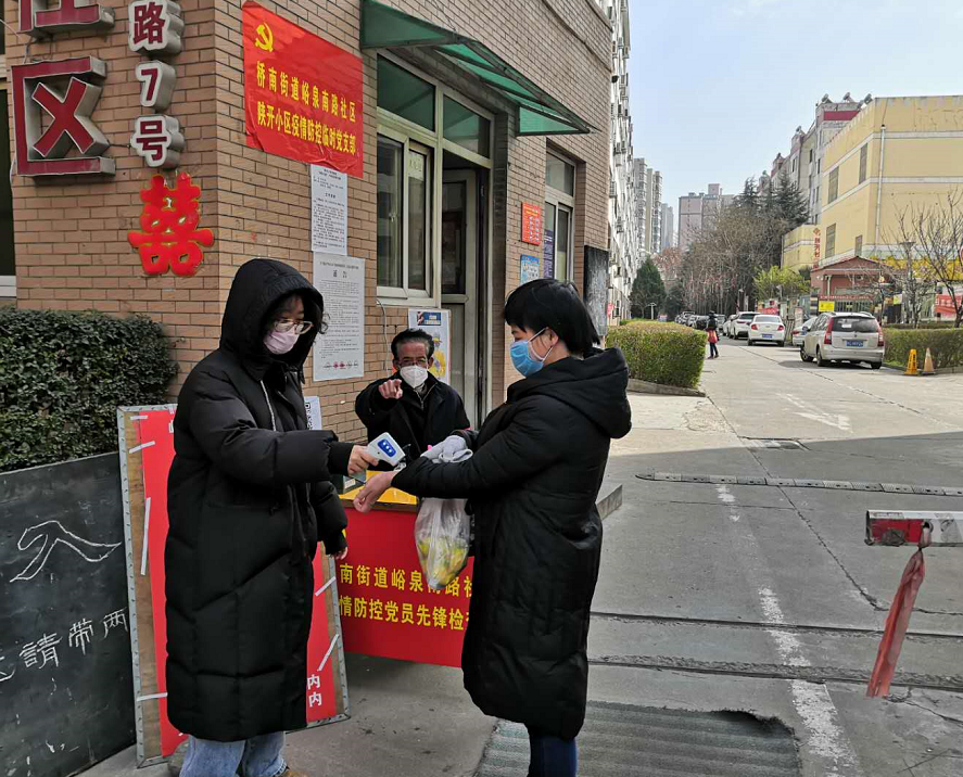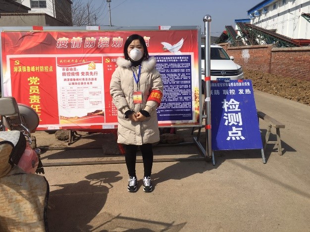 南映紅同學在村黨員先鋒隊值班,負責測體溫,登記出入信息