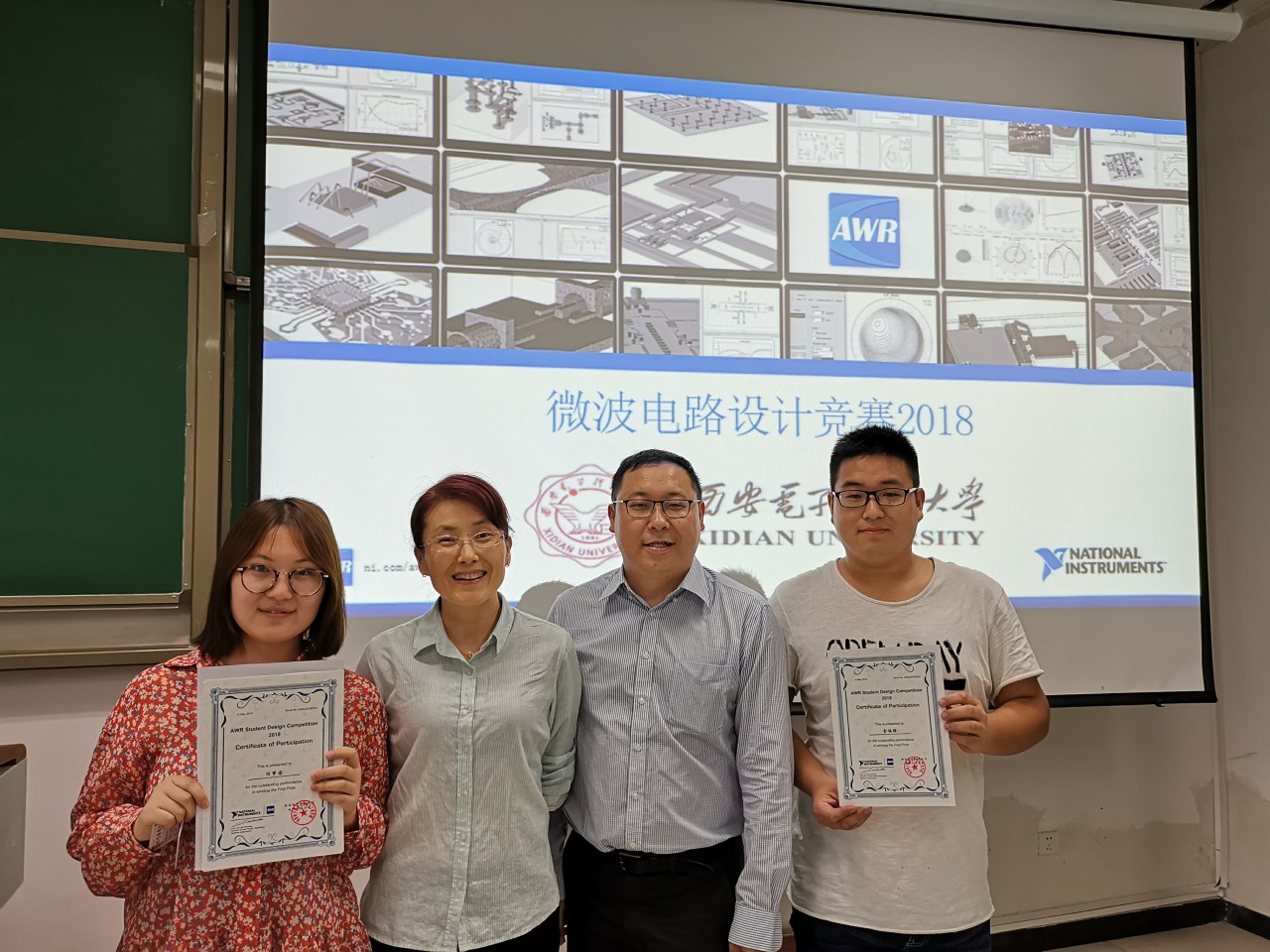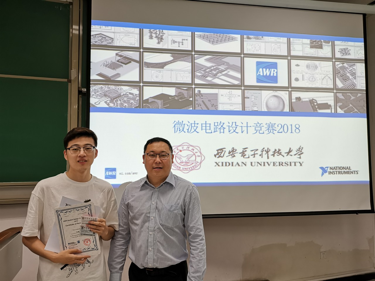 由美國Ni AWR公司與我校電子工程學院聯合舉辦的第三屆(2018)微波/射頻電路設計競賽已圓滿結束,5月24日下午在北校區西大樓105教室舉行了頒獎儀式,現場頒發獲獎證書及獎勵金。本次競賽歷時半年,在電院張媛媛老師的組織下,NI AWR公司的技術經理徐粒栗、萬智龍在我校進行了數次免費培訓及競賽答疑,切實提高了學生的工程研發能力。同學們參賽踴躍,競賽作品質量高,取得了理想的學科競賽效果。