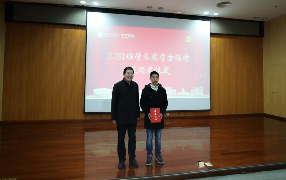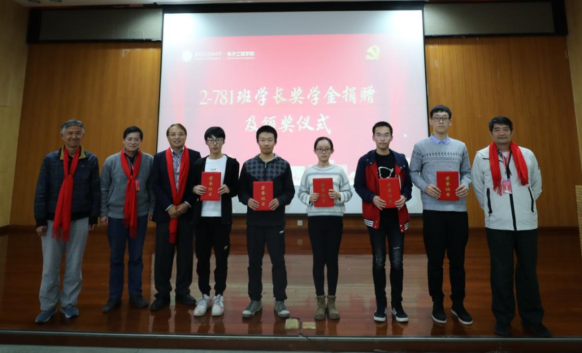 經學院審核、公示,決定給予刁偉豪等排名前16位的2017級本科優秀學生發放“2-781班學長獎學金”。2-781班校友代表、副校長高新波為獲獎學生頒獎。