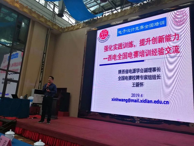 全國電賽校聘教練專家組長王新懷老師應邀做了題為“強化實踐訓練,提升創新能力-西電全國電賽培訓經驗交流”的大會報告。西電在2015年和2017年全國電賽一等獎獲獎數并列全國第一,報告從全國電賽賽制分析、西電電賽培訓思路、組織體系、實施方案、培訓效果、經驗教訓等眾多方面,分享了西電全國電賽強化實踐、提升創新能力所做的工作,介紹了取得的成績,并向全國電子設計競賽同行推廣了西電經驗。