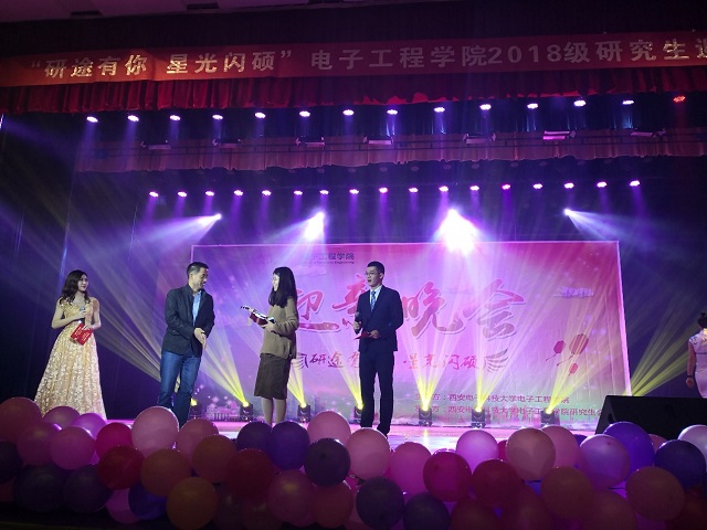 穿插其中的互動抽獎環節更是將晚會推向了高潮,同學們積極參與,會場氣氛熱烈。微信墻的設立也為此次晚會增色不少,同學們通過新媒體表達了對晚會的看法,說出了自己對研究生生活的期待,道出了對老師、對演出人員和幕后工作人員的敬意。本次迎新晚會花費了接近三個月的時間進行準備,電子工程學院研究生會所有成員及臺前幕后的所有演職人員付出了巨大的努力和汗水。