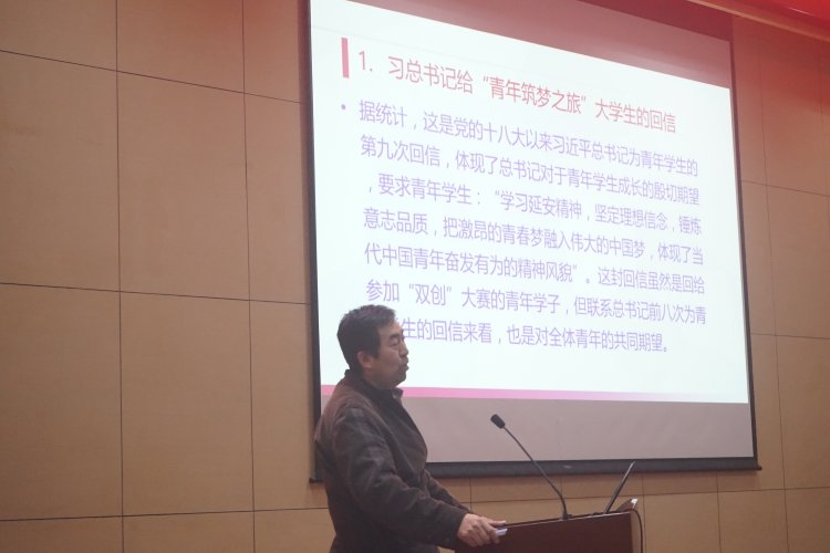 緊接著,夏永林教授向同學們剖析了回信中總書記對全體青年的四點期望,一是堅定理想信念,沒有理想信念就會導致精神上“缺鈣”,中國夢是全國各族人民的共同理想,也是青年一代應該牢固樹立的遠大理想;二是錘煉意志品質,青年大學生一定要練就過硬本領、勇于創新創造、矢志艱苦奮斗、錘煉高尚品格;三是扎根中國大地,廣大青年和青年學生要接地氣,響應黨的號召,胸懷祖國和人民,奉獻社會和他人,積極投身祖國最需要的地方;四是確立遠大目標,青年大學生要志存高遠,緊跟時代砥礪前行,擔當責任奮發有為。