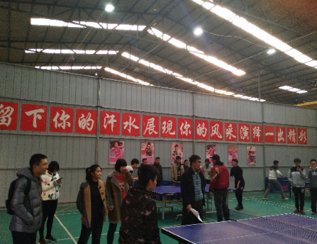 參加此次比賽的參賽隊伍共22支,分別來自1702011、1702014、1702051等16個班級。所有隊伍分為A、B、C、D四個小組開始比賽。各支隊伍首先在組內進行循環賽制,每組取積分前兩名參與下一輪的淘汰賽。經過激烈的爭奪,取得后續比賽資格的隊伍有A組:1702051班代表隊、1702911班代表隊;B組:1702013班代表隊、1702011代表隊;C組:1702015班代表隊、1702071班代表隊;D組:1702018班代表隊、1702014班代表隊。進入淘汰賽以后,每位選手更是不遺余力,比賽更加焦灼,選手的熱情在寒冬中沸騰著。經過淘汰賽的角逐,1702011班、1702013班、1702051班和17020114班代表隊獲得了半決賽的入場券。半決賽中,四支隊伍兩兩分組,1702051班對陣1702013班,而1702014班則與1702011班班展開較量,兩組比賽同時進行。1702013班以一記漂亮的扣殺率先拿到該輪的一分,隨后另一組的1702011班擦網過線混淆了對手的視線為本班隊伍贏得一分。對陣的四支隊伍實力強勁,比賽中出現了很多精彩的瞬間——1702014選手的側身攻、正手快帶,以及1702051班選手的反手快撕斜線等,都贏得了滿堂喝彩。經過激烈的比拼,1702011與1702051在半決賽略勝一籌進入最后的冠軍之爭。