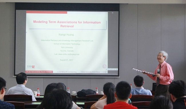 訪問期間,黃教授在北校區主樓Ⅲ區430會議室做了題為“Modeling Term Associations for Information Retrieval”的學術報告,報告會由高新波教授主持。