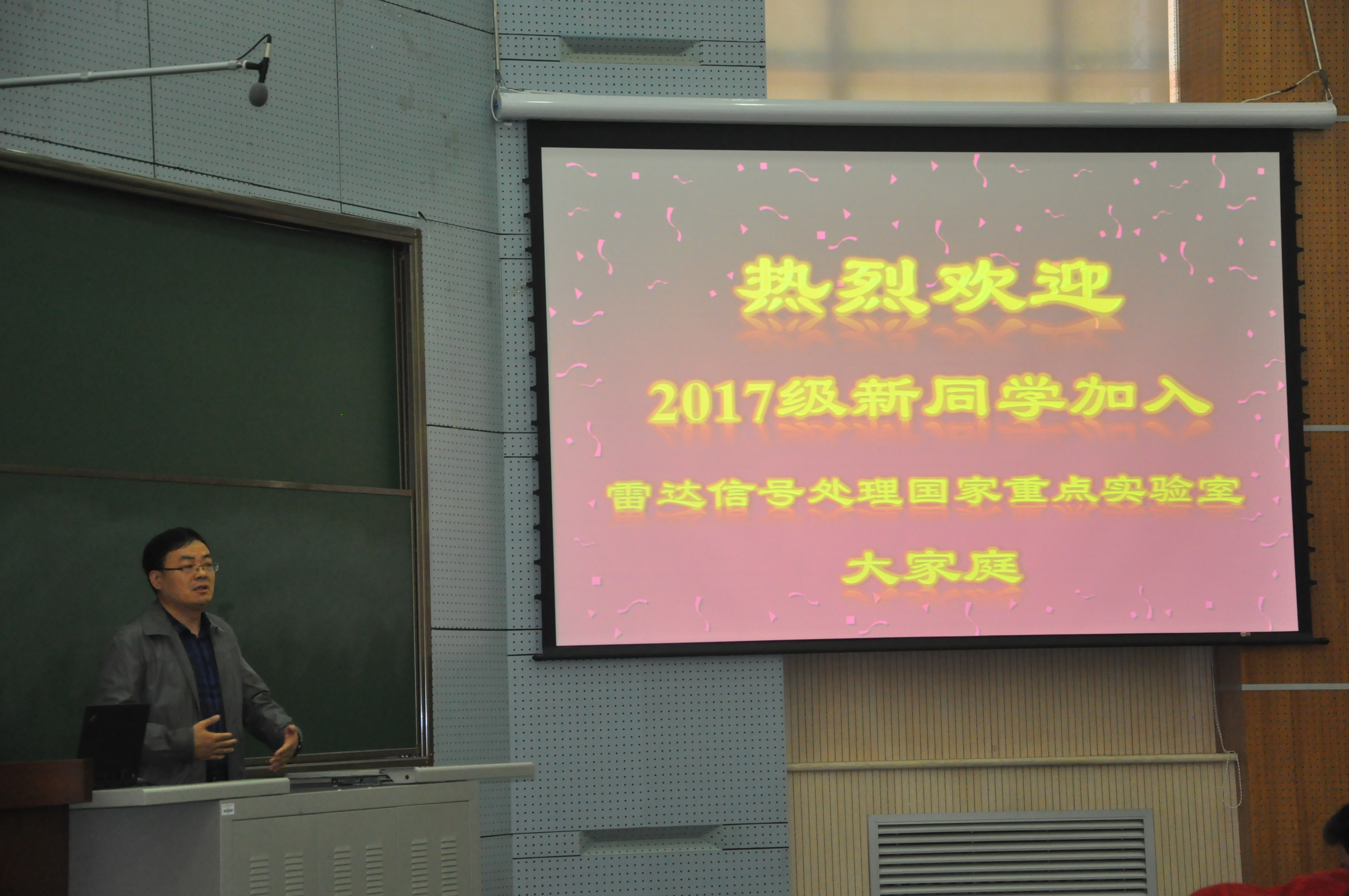 典禮開始,劉宏偉主任親切致辭,歡迎研一、博一新生加入雷達信號處理國家級重點實驗室大家庭,與新生們回顧了實驗室的歷史、文化的傳承,并從行業影響力和聲譽、學科競爭力、研究生培養等多個角度解讀實驗室長期秉承的“重視基礎研究、理論聯系實際”發展理念,在學術創新和應用研究上對新生們提出了殷切期望,祝愿他們擁有精彩充實的研究生生活。