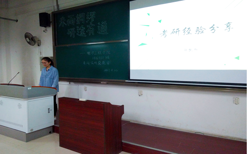 (通訊員:楊笑宇王雷)“楊花柳絮隨風舞,雨生百谷夏將至。”2017年4月20日晚7點,由電子工程學院1402031班主辦的“未雨綢繆,研途有道”考研經驗交流會在西安電子科技大學南校區B403成功舉辦。
