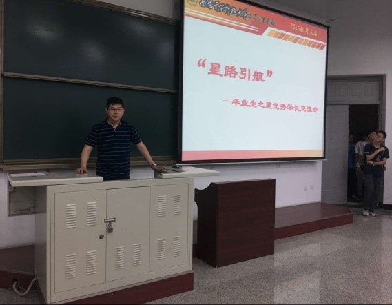 活動中,三位優秀畢業生分別從專業學習、科技創新及競賽、豐富課余生活以及要在大學中學會做人做事四個方面為大一同學做了經驗交流。交流過程中,三位優秀畢業生語言樸實,貼近同學并結合自己身邊發生的具體事例,使在座的同學產生強烈的共鳴,交流過程中掌聲頻頻響起,同學們在此次交流中都有所感觸和收獲。