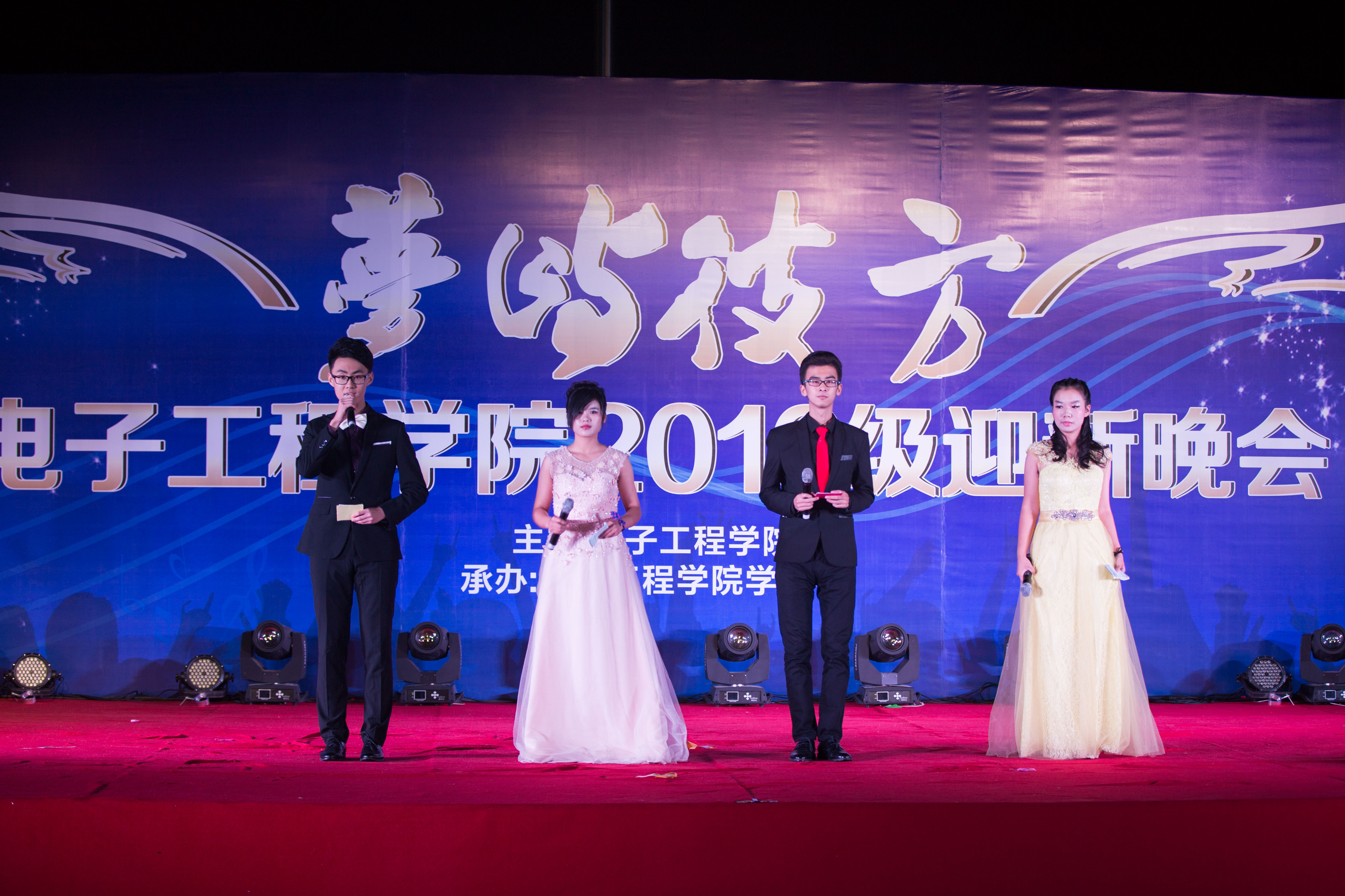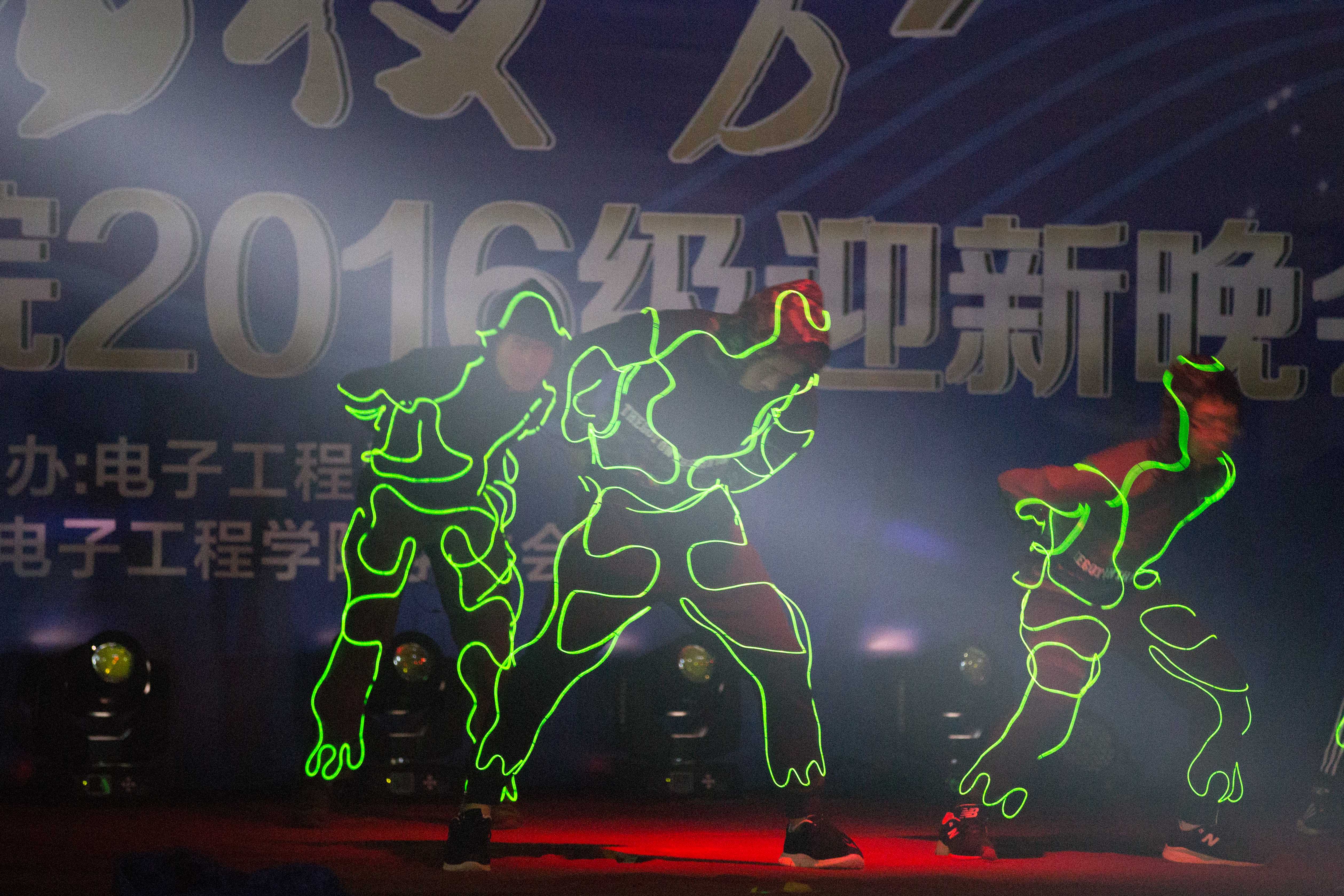 本次迎新晚會的前期準備充分發揮了學院大一新生的積極性和主動性,晚會大部分節目由電院大一新生各班級選送。1602061班自編自演的創意熒光舞,將科技與藝術完美結合,忽而閃爍忽而熄滅的點點熒光,在夜色中格外奪目。1602014班飽含深情的詩朗誦《青春不迷茫》,展現出他們對未來美好大學生活的無限憧憬。1602019班的小品《讓大學值得擁有》展現了電院學子不辜負美好時光、努力成長成才的決心和力量。1602013班的舞蹈《超級冠軍》更加表現出了電院學子追求卓越的精神風貌。電院大一中法班的節目《法蘭西之旅》,為晚會增添了引人入勝的異域風情。