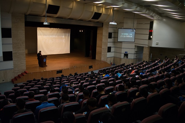 (通訊員李怡桐緱佳佳)科技創新,星火傳承。深秋的寒風絲毫沒有吹滅電院學子對于科技創新的熱情,2016年10月28日下午,學校第28屆“星火杯”大學生課外學術科技作品競賽院賽開幕式在西安電子科技大學南校區大學生活動中心小劇場隆重舉行。電子工程學院黨委副書記張海戰老師、校團委副書記朱偉老師、電院團委副書記錢德年老師、“星火杯”競賽評委代表李隱峰老師、電院各位輔導員老師及各年級學生代表400余人參加了開幕式。